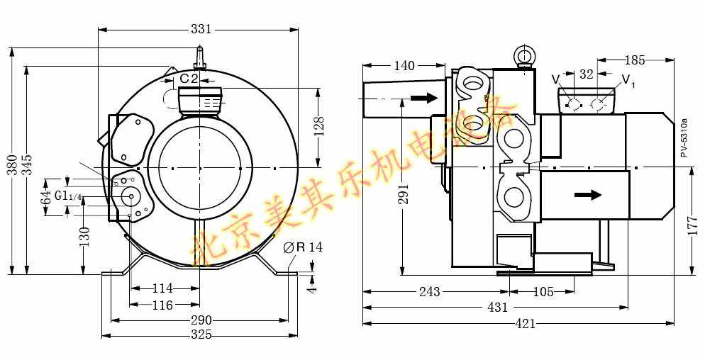 4GH 320/1.5kw高壓鼓風(fēng)機(jī)側(cè)面圖