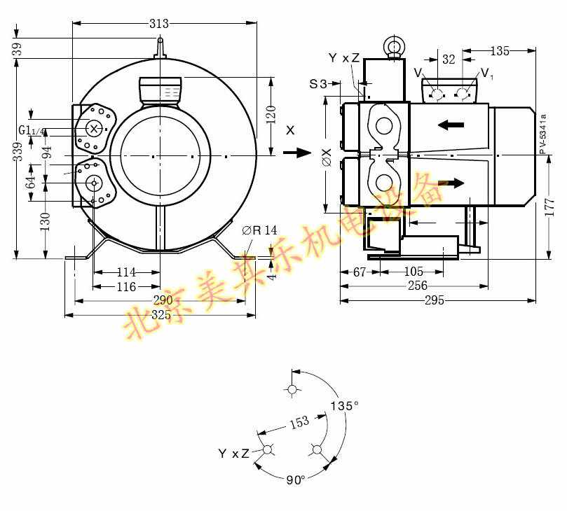 4GH310/850w高壓鼓風(fēng)機(jī)尺寸圖:?jiǎn)挝籱m
