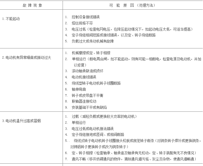 表3 三相異步電動機(jī)的常見故障