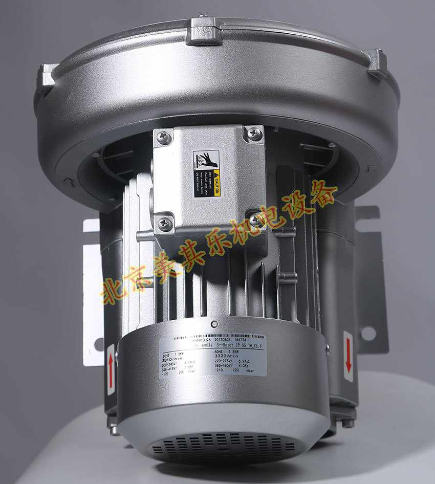 型號(hào):2GH410-H26,三相電1.1kw高壓鼓風(fēng)機(jī)參數(shù):最大流量為145立方每小時(shí),額定真空吸力為負(fù)170mbar,額定出氣壓力為200mbar,噪音值為63分貝,凈重為17公斤,進(jìn)出風(fēng)的口徑為1.5寸內(nèi)螺紋,即ND40。