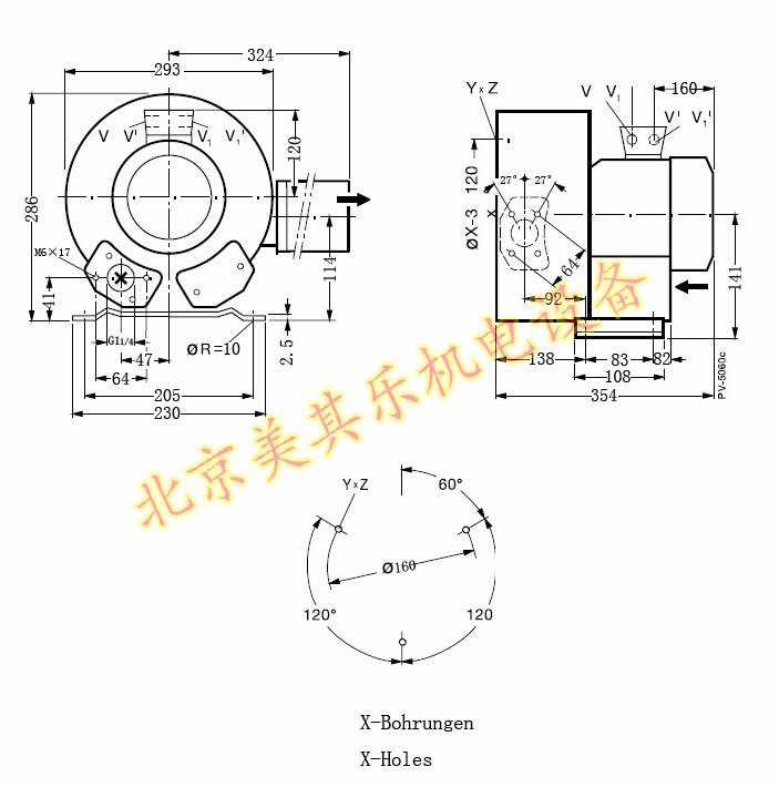 850w雙段高壓鼓風(fēng)機(jī)尺寸圖: